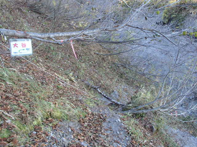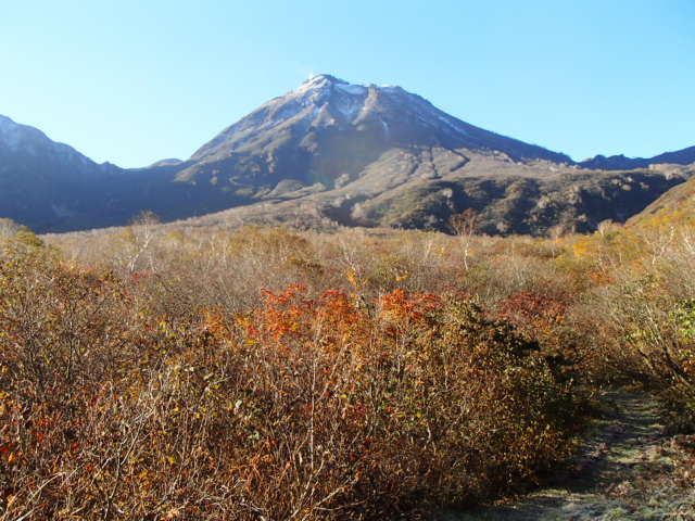 気温も丁度良く歩いていてすがすがしい。登山口からの山頂までの標高差は1600m近いが、北面台地は傾斜が緩く、七曲りからは山腹を巻くように登るのでそんなに疲れることがない。大谷だけは大きく、えぐれた谷を通過するので少々難儀はする。(ロープが張り巡らされているのでそう危険はない。)