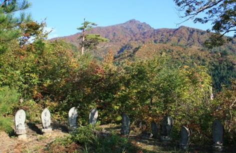 〈2合目の石仏群と金城山〉