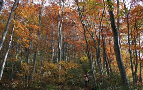6合目の手前くらいからブナの林になり、この辺りがちょうど紅葉の見ごろとなっていた。