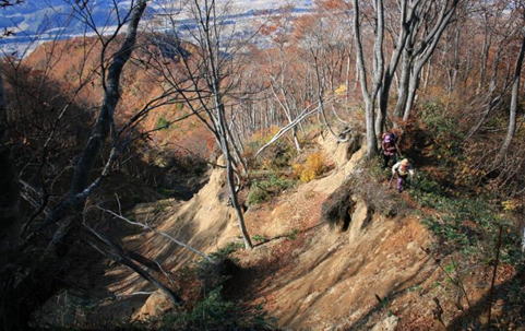 〈9合目付近の崩壊地〉