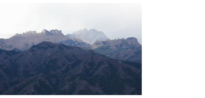 《 二ノ岳から 四ッ又山(左) 一ノ岳(右) 》