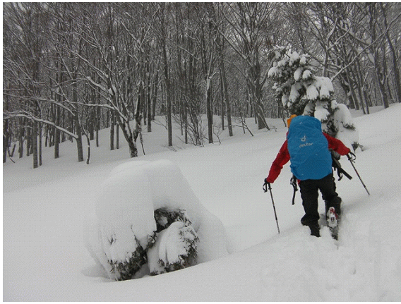 昨年末の守門山系P1080m峰の白い粉滑りに味をしめ,P1080m峰のすぐ隣のP1099m峰に突撃である.
