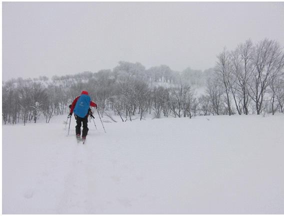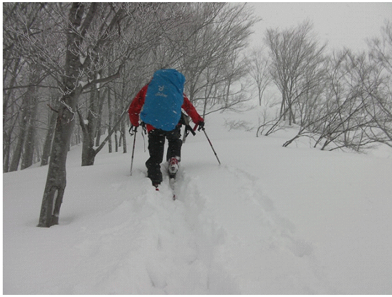 ラッセルはきついが,帰りの滑りが楽しみだ.