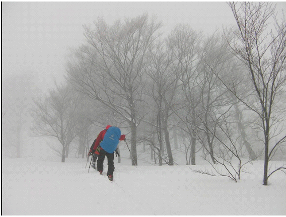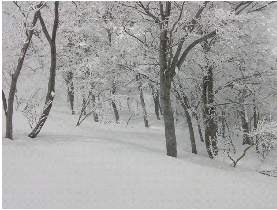 霧氷の咲いたブナの林を更に印象深いものにしている.