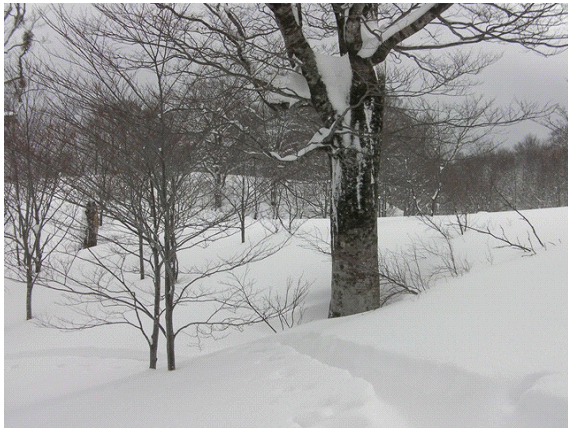 林の中に入れば,雪も軽くなるだろう.