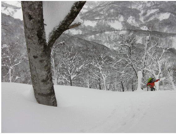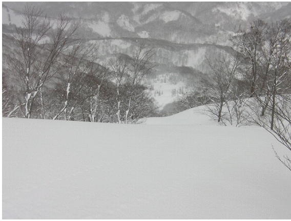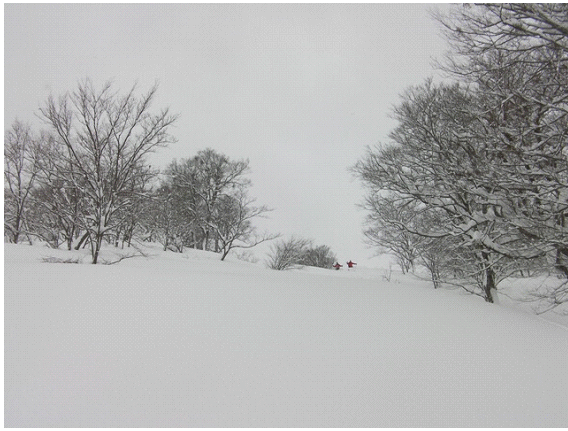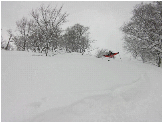 このくらい傾斜があれば,この深雪でも十分楽しく滑ることができる.
