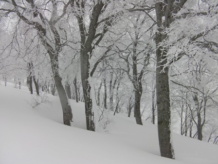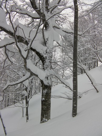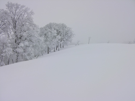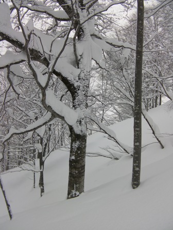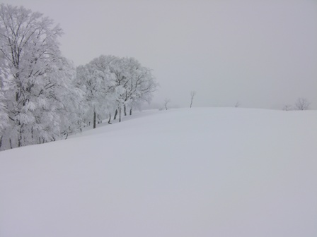 ここは深雪ノートラックオープン急斜面の誘惑に打ち勝って,楽しい林間滑降を選択すべきであった.