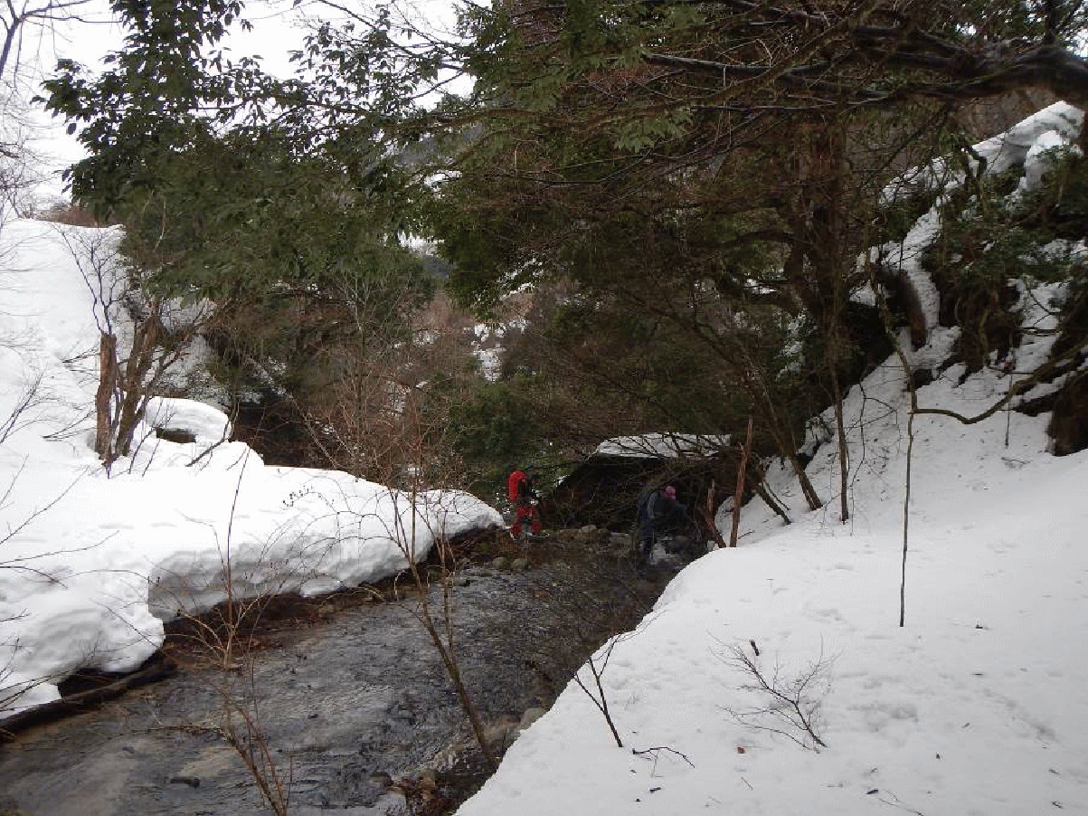 【時間記録】 スキー場駐車場7:58 − 沢渡渉8:46 − 中ノ岳11:00 − 一ノ峰と二ノ峰鞍部12:13〜14:23 − 三ノ峰14:35 − どんぐりの森15:20 − 車15:37