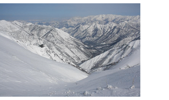 センノ沢の傾斜は緩いが、スキーがよく走る雪だったので、すぐに地王堂川に着いた。上ではゆっくりできなかったので、ここでバス待ちも兼ねて大休止とする。下の方は風もなく、厳冬期とは思えないほど日差しも暖かかった。