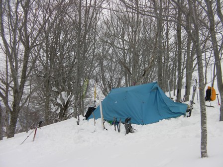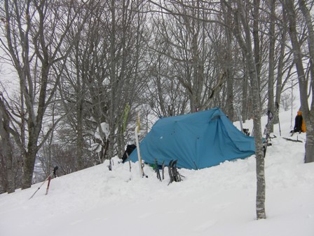 この雪では,そのまま尾根なりに滑ったほうが良かったようだ.