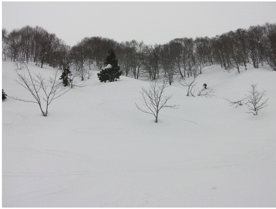 ここは山頂から小川入沢まで続く写真の通り開けた斜面が続く.