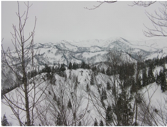 山毛欅潰山は,実際に登ってみると,名前の印象とは反対に山頂近くまで杉が植林してあって少々期待外れではある.