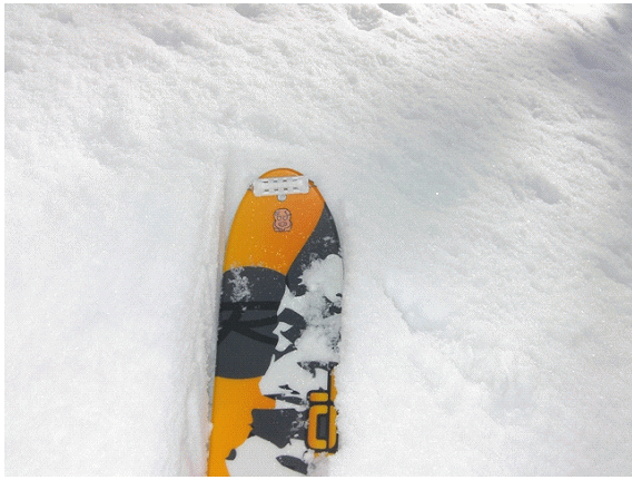最近降った雪の表面がクラスト気味で,踏みこむと少し潜る.