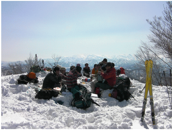 山頂を整地しているとMs山の会,悠峰西洋わかん隊,Ng山岳会の面々が続々と山頂に到着する.