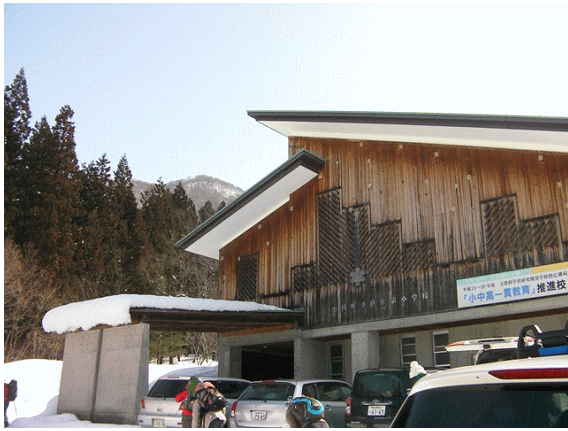 【伊佐領小学校(奥のピークが百石山)】