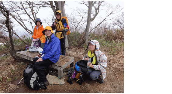 10分くらいで店を閉め、ゆっくりと下っていきました。いつの間にか雨も上がったので、天神山で「お昼のやり直し宴会」を開きました。コーヒーを飲んだりおやつを食べたり、たくさん話をして大いに盛り上がりました。