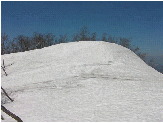 本峰ピークはいつも雪堤のように盛り上がっている.