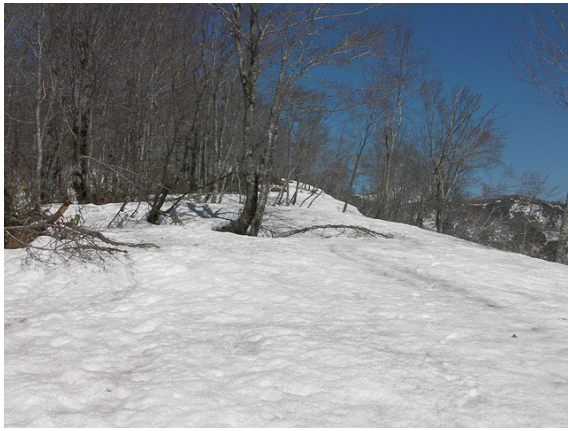 標高1050mくらいから明瞭な尾根に乗るが,写真のとおり根開きが進んでいる.
