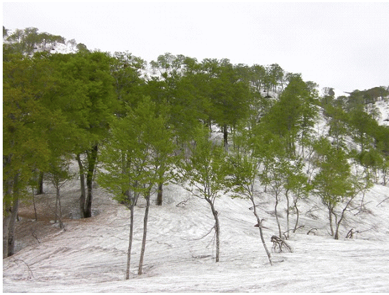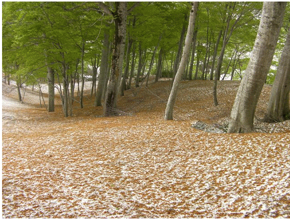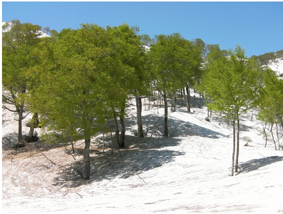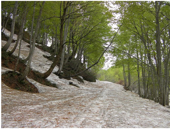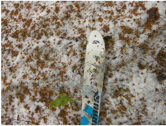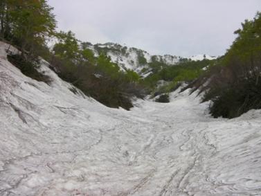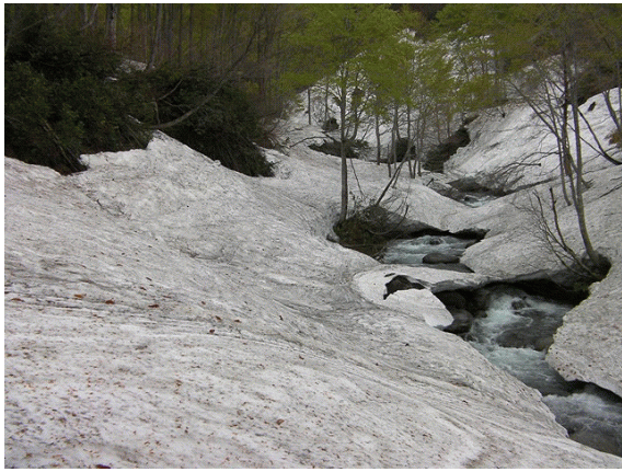 雪はタールやブナの芽鱗(がりん)で汚れているが,十分の量がある.