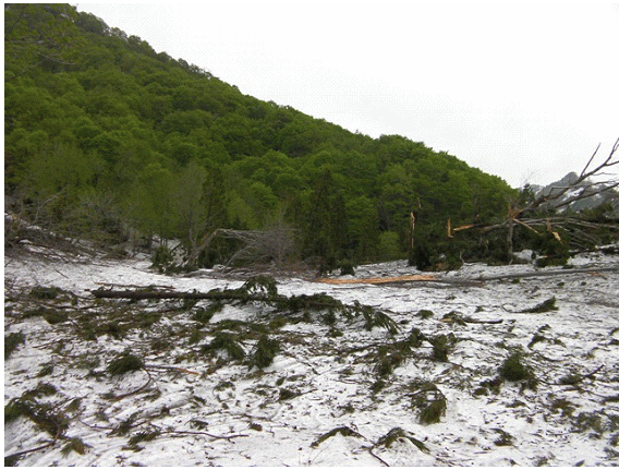 【タモ沢からの雪崩?跡】
