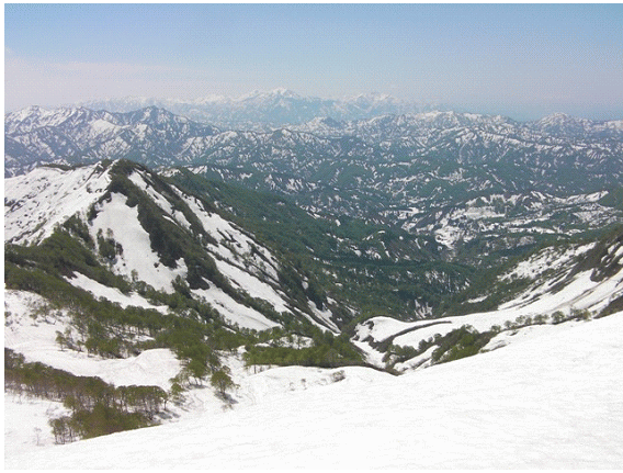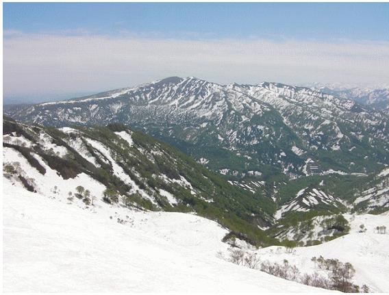 【毛猛山塊(奥のとんがりは荒沢岳)】