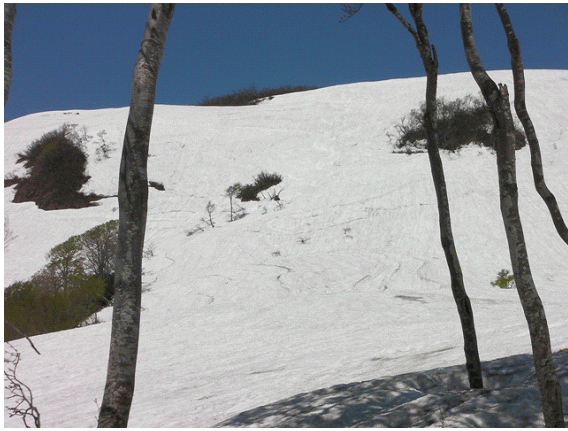 雪崩としか思えないが,デブリが無い.