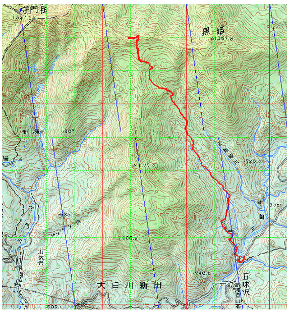 標高680m付近で下黒姫沢から離れて左岸側の尾根に取り付く.