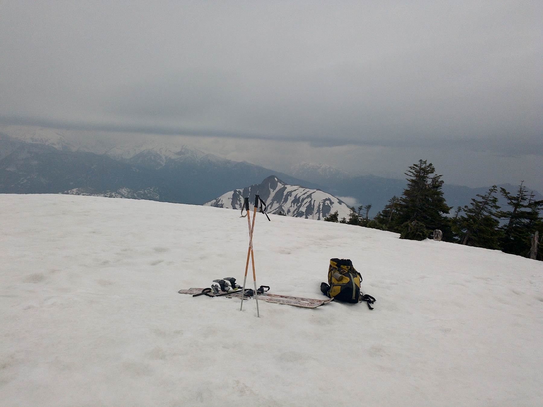 最後の核心部は台地から滝沢出合に下る急な夏路で担いだスキーをヤブに引っ掛けながら捕まり、注意していたが泥でスリップして転んでしまった兼用靴の下りはきびしいのである。