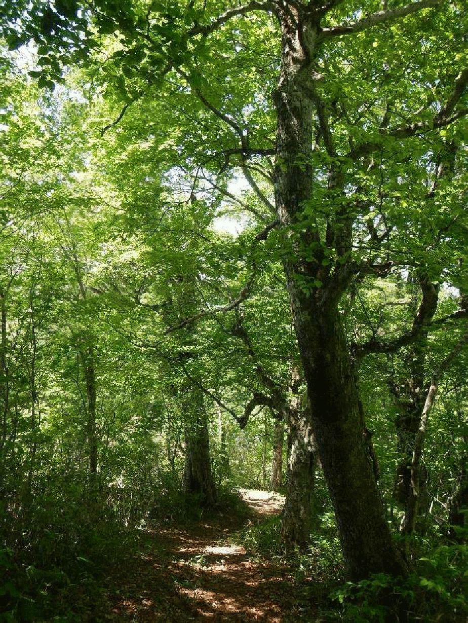 ブナの新緑が美しい道です。1時間半ほど歩いた、988メートルピークを過ぎたあたりで弥生からの道と合流します。