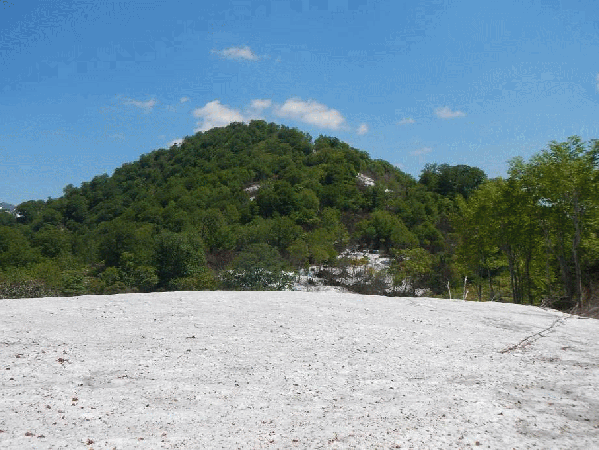 あと一登りで鏡山山頂です。鏡山は新緑で靄っているみたいに見えます。