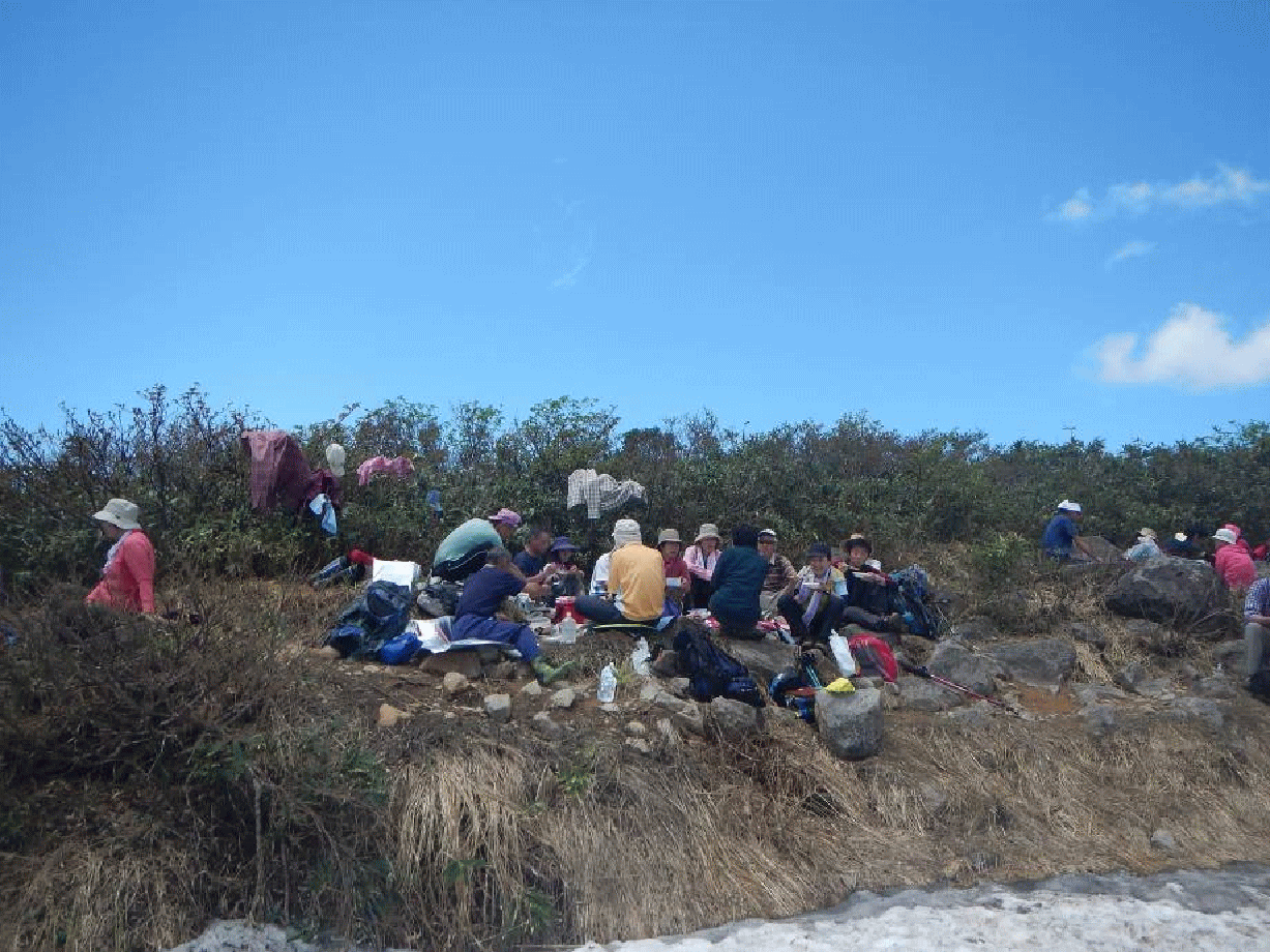 「山頂での記念撮影。3人足りませんが」