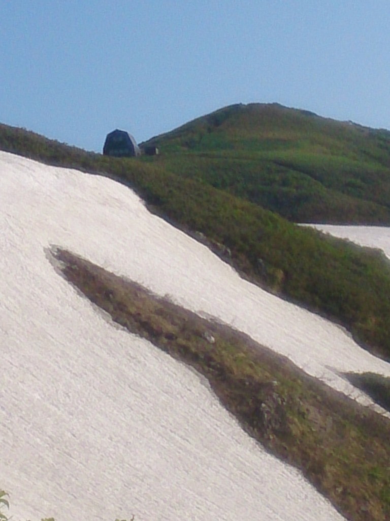 ◎イチゲの群落には遅く、キスゲには少し早かったが、それでも飯豊の稜線は、いつもの