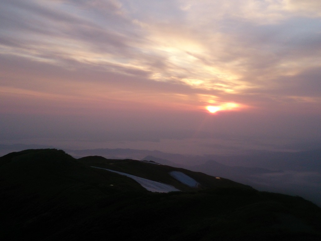 4:00起床 4:20山頂にてご来光 7:10朝食後出発 7:35鉾立峰