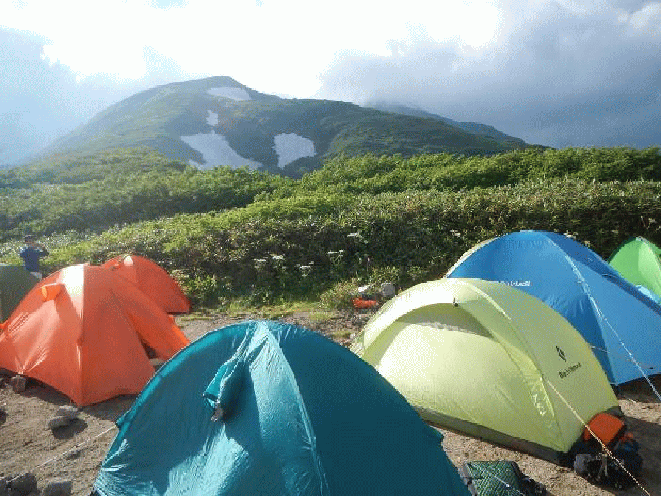 川入集落まで車が入れるようになり、集落から歩き出す。台風一過で楽しい山行の予定が、天気回復せず、雨風強し。ガスの中の3日間となった。花は今が見ごろと咲き誇っていた。天気が回復しないので、1泊で帰る予定だったが、結局空身で大日岳まで遊びに行く。展望はなし。2日間とも切合でテントを張った。初日が3張、2日目は20張ほど。