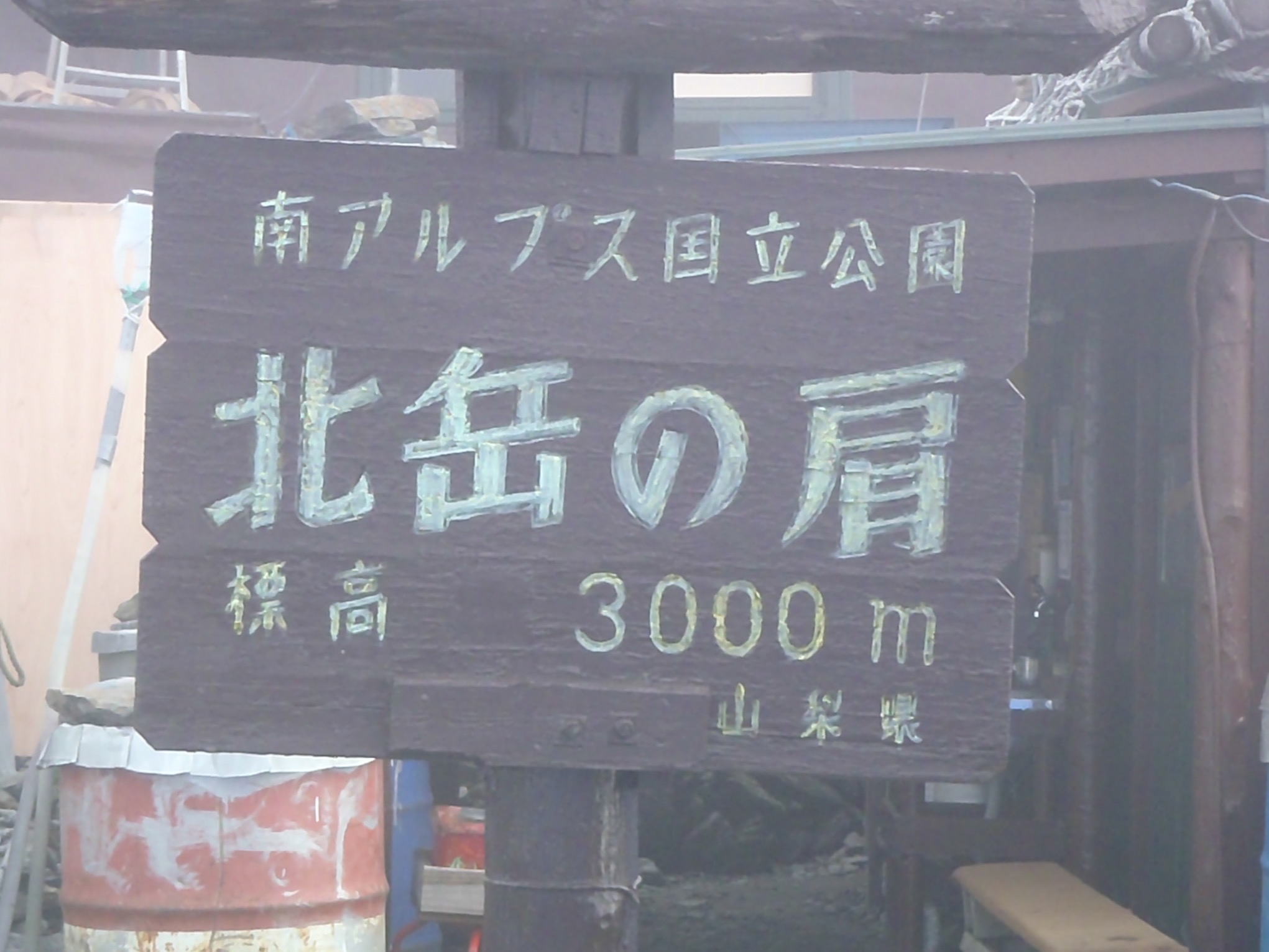 昨日の夜から、雨が続いていて、天気予報も、悪かったが、予定通り出発。肩ノ小屋付近までは、雨。肩ノ小屋付近で、雨は小降りになったが、ガスっていて、何も見えず、北岳頂上付近もガスっていて、何も見えず。北岳山荘についても、雨は止んでいたが、何も見えず。