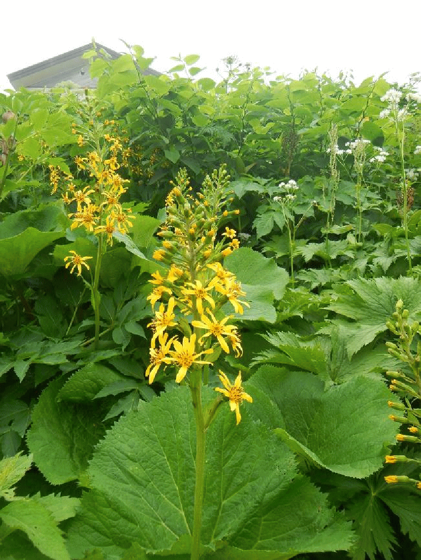 <梅花皮小屋直下のお花畑。オタカラコウ>