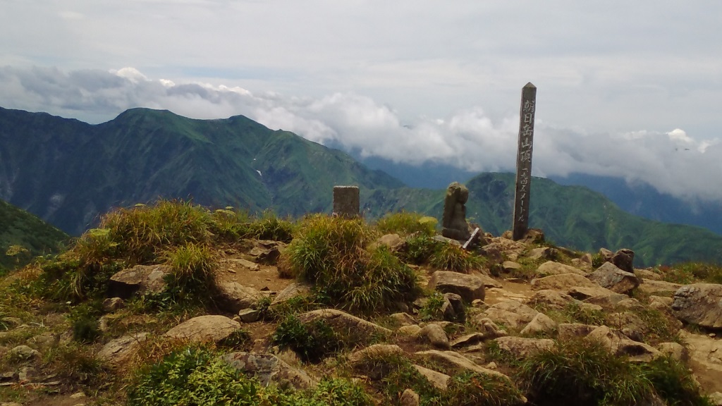 朝日岳の頂上は癒しの頂上である。草原と池塘、水場もあり幕営には最高の場所であろう。ここで念のため空いた500ccペットボトルに水を汲んでおく。