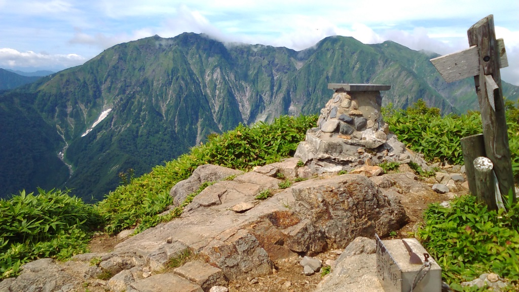 笠ヶ岳へ向かっていくともう一人登山者が見えた、朝日岳への登りで追いつく。私と同じ高年令の人でコースは馬蹄形縦走で明日、天神尾根に降りるとの事。近頃は秋になって涼しくなるとトレールランで馬蹄形縦走を一日でするのが人気になっているようだ。