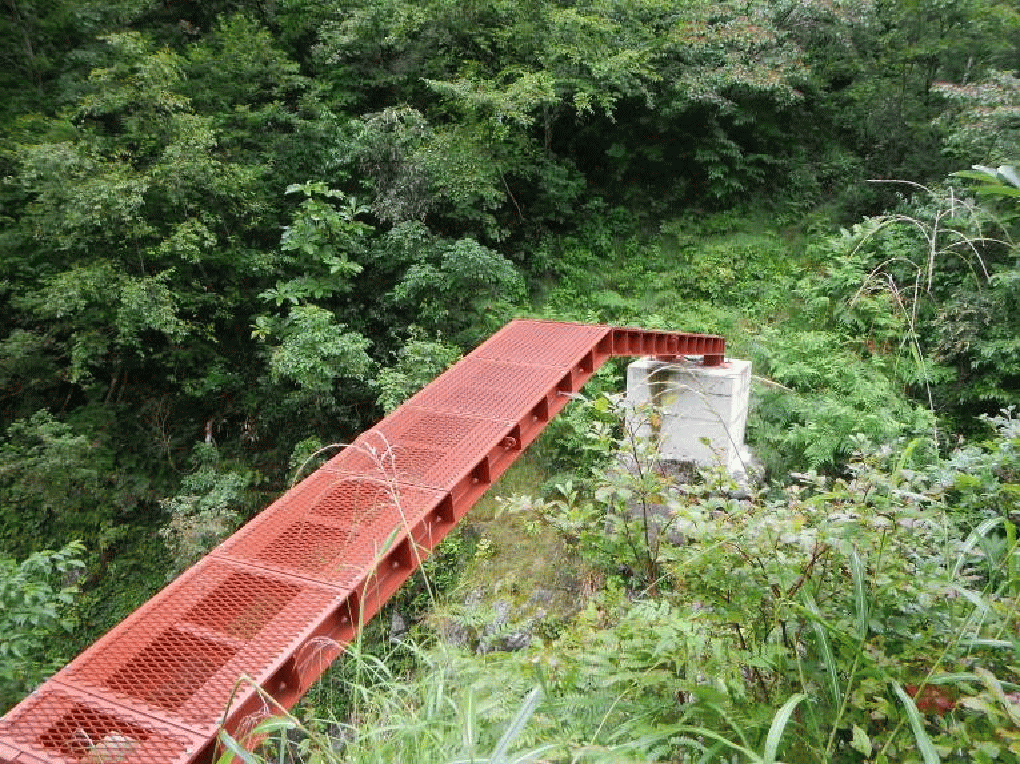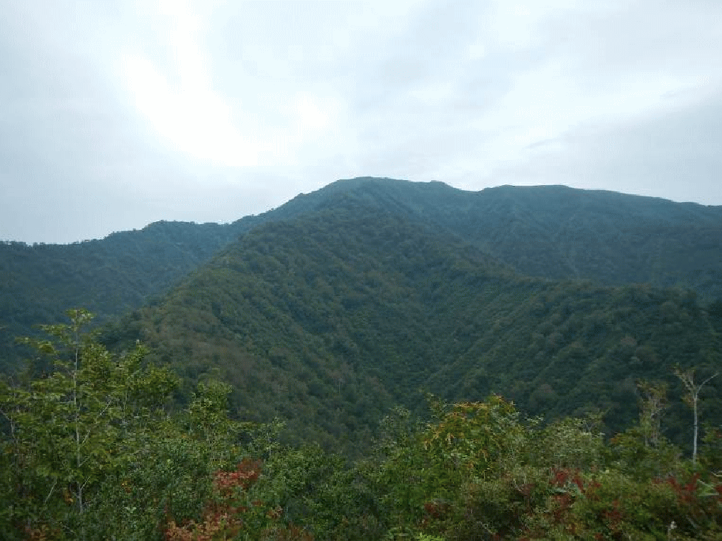 奥只見シルバーライン途中からシャッターを開けたところが登山口だ。しばらくは沢沿いの道。沢の渡渉は長靴でギリギリ渡れるくらい。鉄橋が架かっている黒又沢本流を越えると尾根道となった。見晴らしが利く、気持ちの良い中急斜面の登山道が続く。越後駒ヶ岳もすぐそこに見える。974mのピークからはこれから登る尾根の向こうに未丈ヶ岳山頂が見えた。ピークから少し下りると樹林帯となり、急斜面を登り切ると山頂だった。