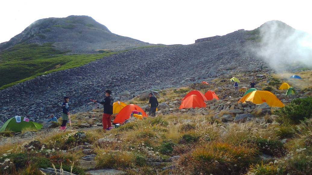 槍平でビール700ccとウイスキー少々、カップ麺を食べるとすぐに寝袋に入った。テント代(1000円/人)