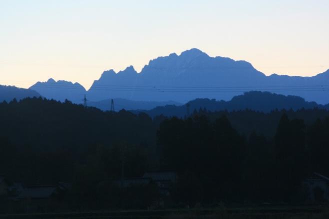 《上市付近から剣岳のシルエット》