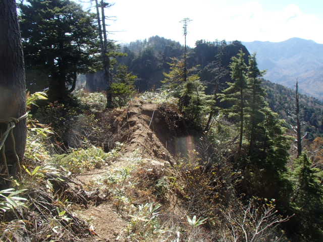 登りに通過して来たカミソリ岩とキレット