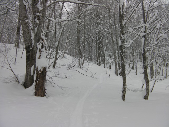 シールでも思いのほか良く滑る.が,木が埋まり切っていないので,視界を遮りどこを滑っているのかよく分からない.