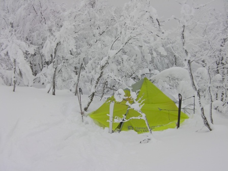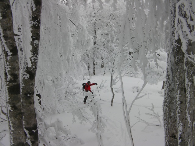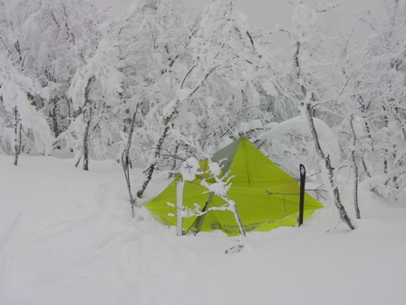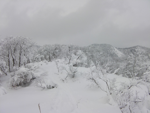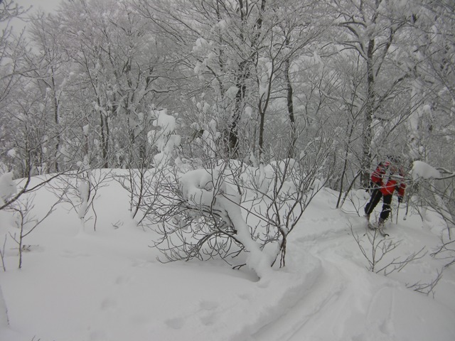 登れないどころか,シールを使っても果てしなく続く籔の登り返しに息も絶え絶えだ.