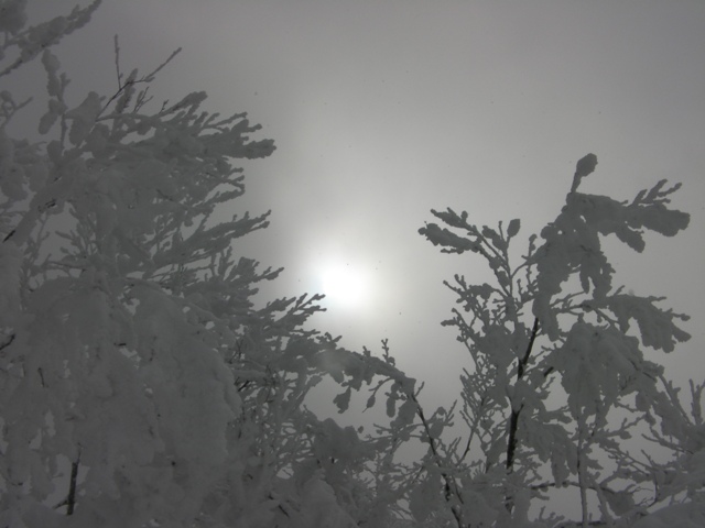 【霧氷に雪が付いた枝が綺麗】