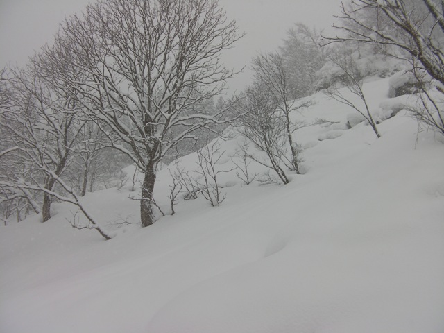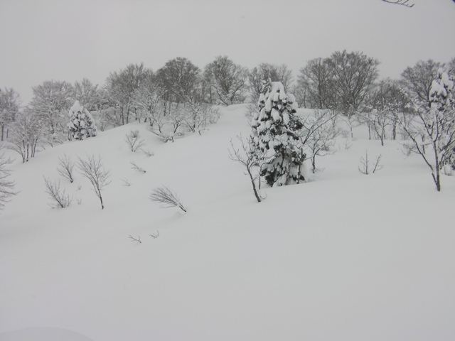 それなりに締まった雪の上に20cm程度の新しい雪が積もっている.