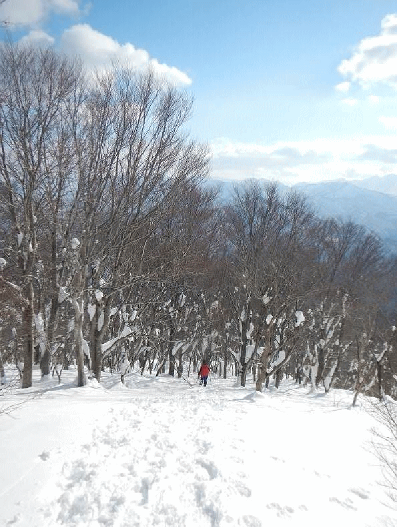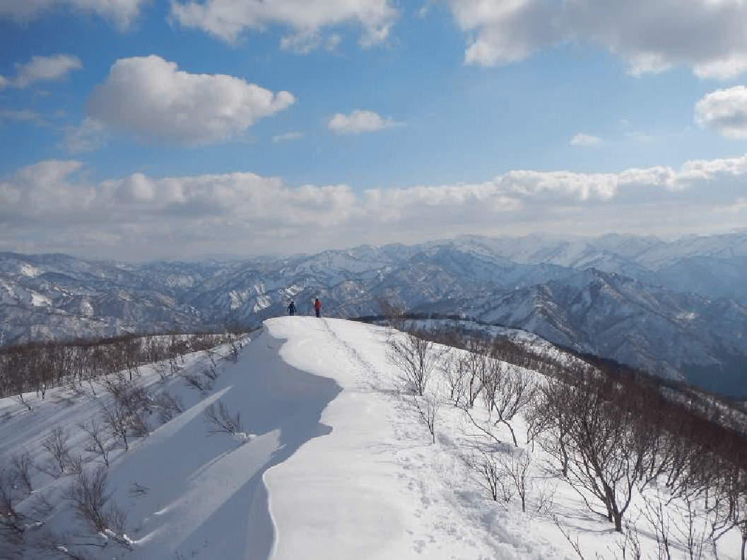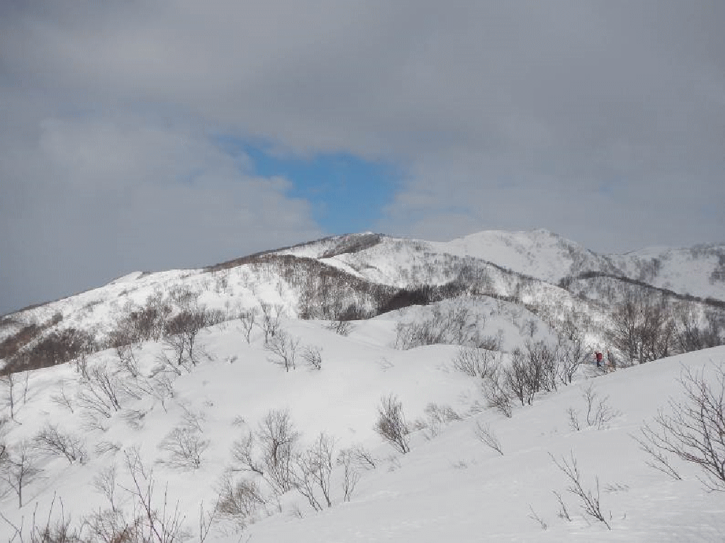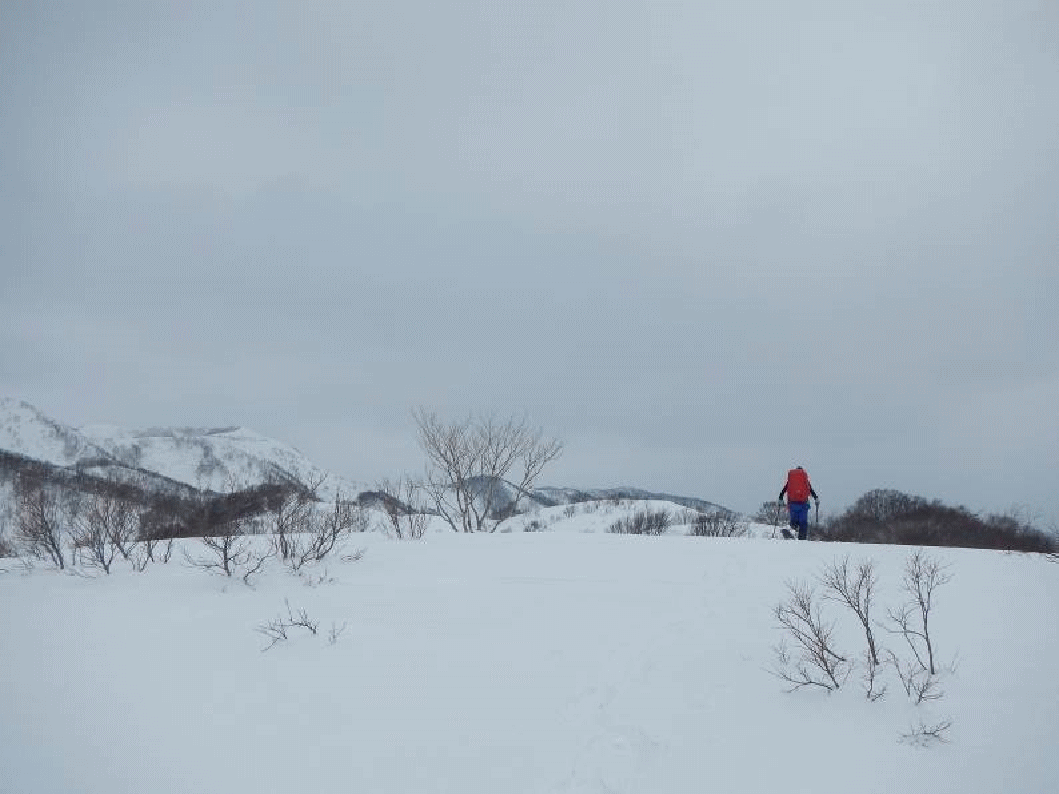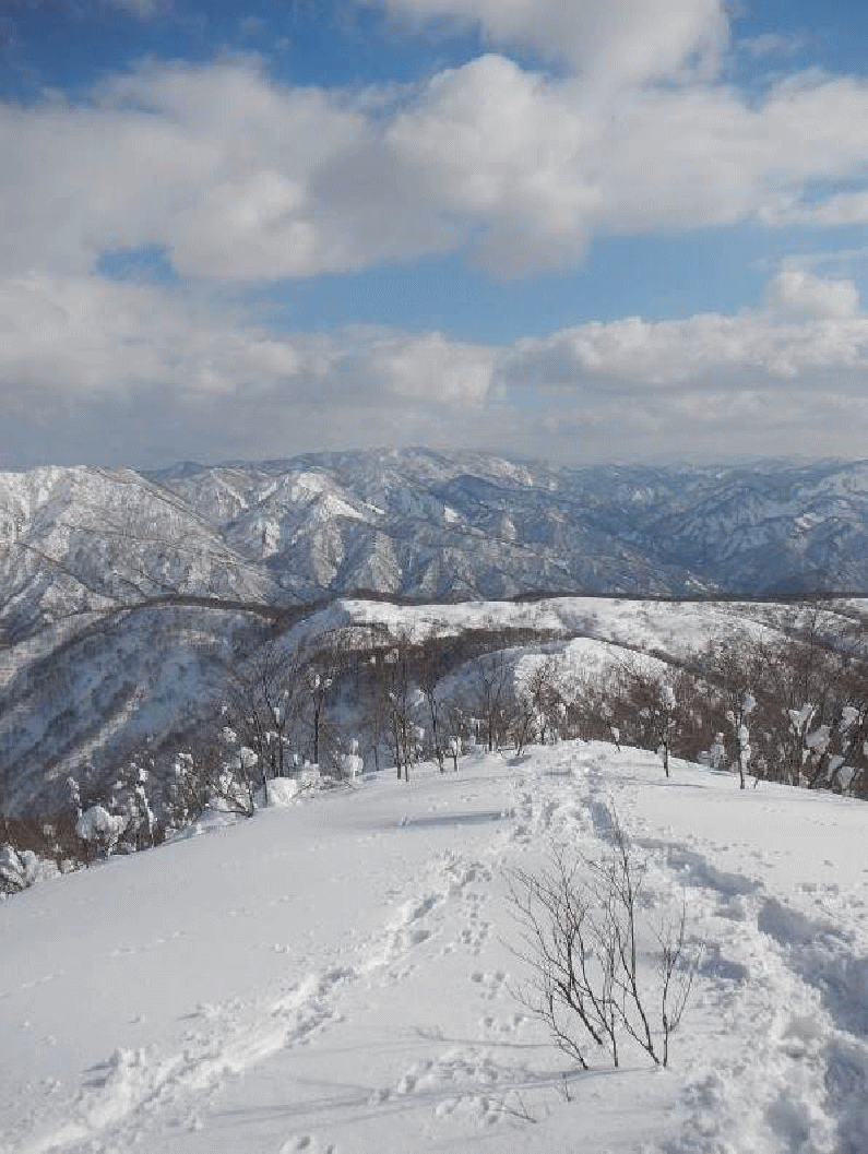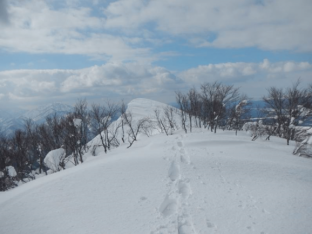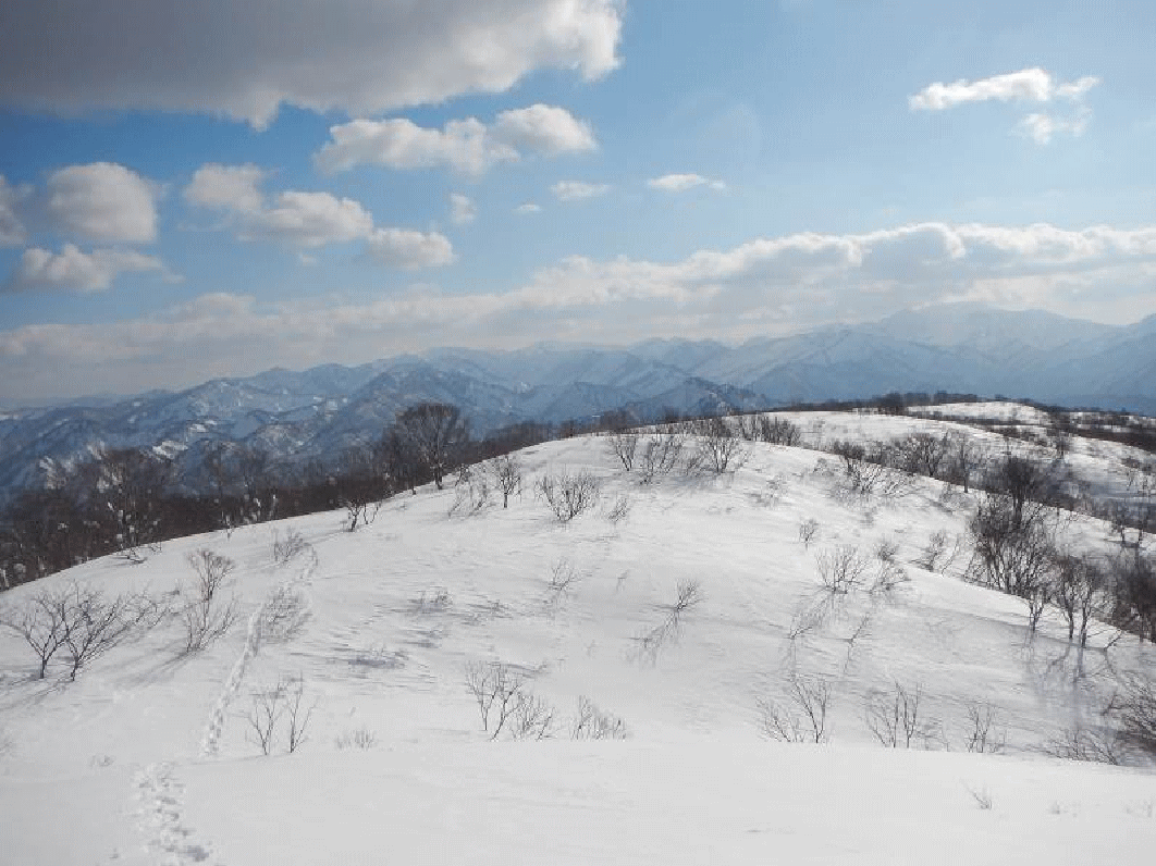 標高が700メートルほどなのに、雪原が広がるうさぎ平。たおやかな尾根が幾重にも連なっている。今回は沢沿いのルートを登ったが、沢から取り付いた尾根も明瞭で登りやすかった。なんとなく身近に感じられたうさぎ平。低山なのに積雪期ならではに広がる光景は素晴らしいの一言だ。
