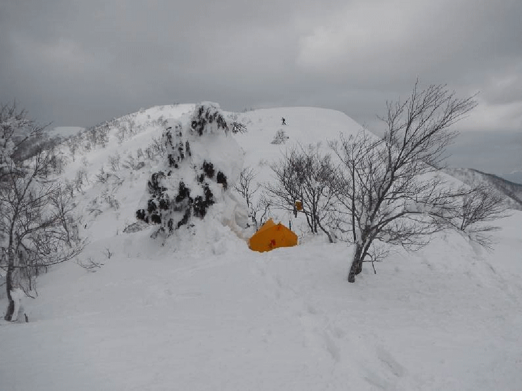 天気は曇りから晴れの予報。菅名山塊からの主稜線に近づくにつれ、青空が広がってきていた。861mピークの横山の基部にお昼のツエルトを張り、風越山をピストンしてくる。大蔵山には大勢の登山者が見えた。久しぶりに登った風越山。山頂も、不動堂山への尾根も、風越尾根も、すべてが懐かしかった。天気は回復し、温室状態のツエルトの中でゆっくりと過ごし下山にかかった。