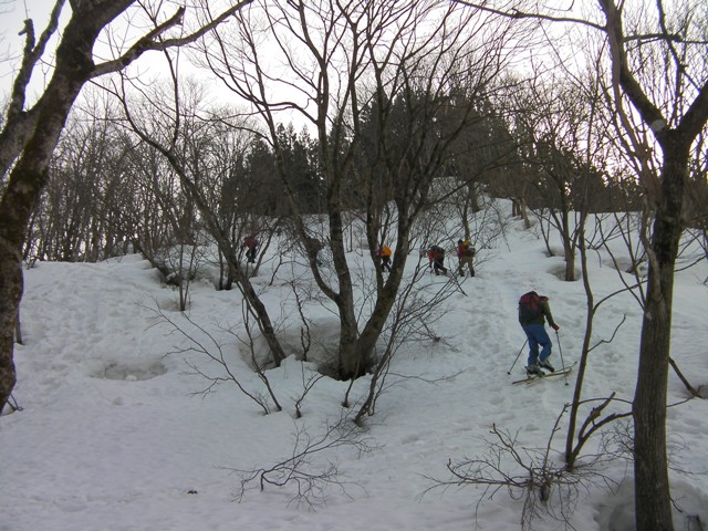 ここは傾斜も適当で木の間隔も適当で,雪が良ければ滑りも楽しいところである.