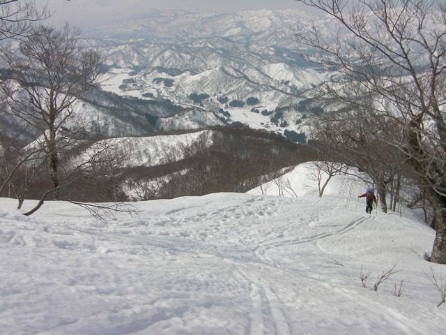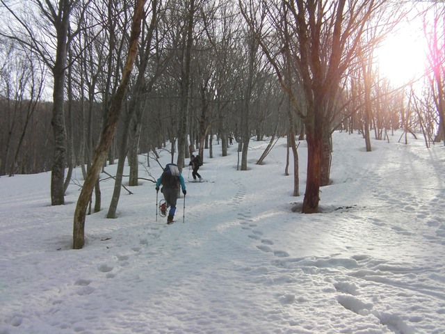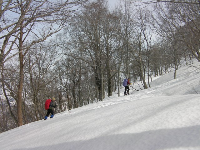 大きなブナも目立つ気分のいい斜面が続く.